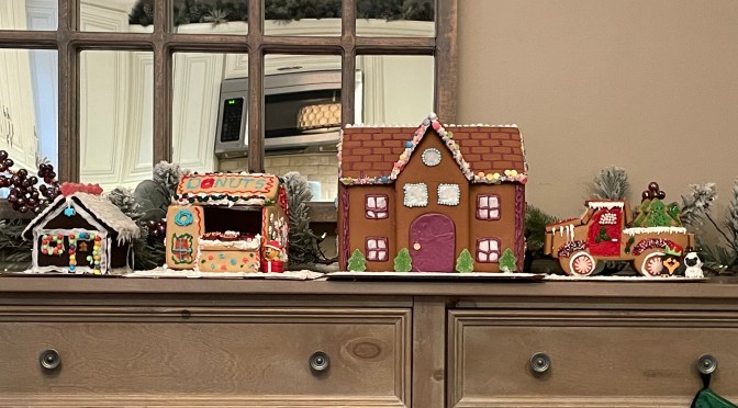 Another idea that we have is to make gingerbread houses together with your friends. You could even make a whole night out of it! By putting up Christmas lights, watching a Christmas movie, and drinking hot cocoa while your cookies bake, you can create a beautiful Christmas ambiance and make so many memories with your friends. And after they are done baking, you can make and decorate gingerbread houses together while listening to your favorite Christmas songs. When you finish your houses, you can either eat them, or leave them up for the rest of the holiday season. You could even make a little village out of all the houses you and your friends or family make. If you plan on doing this, just know that the key to making a good gingerbread house is to chill your dough for at least three hours before baking, in order for the dough to maintain a perfect shape as it bakes.